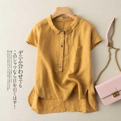 เสื้อเชิ้ตผ้าคอตตอนลินินแขนสั้นรุ่นใหม่