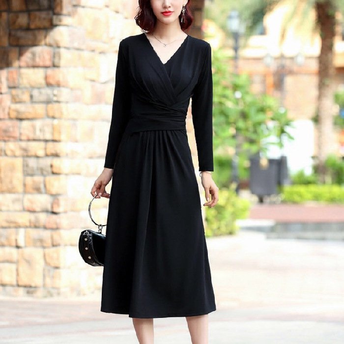 เดรสทรงสลิม คอวี เก็บเอวสง่างาม