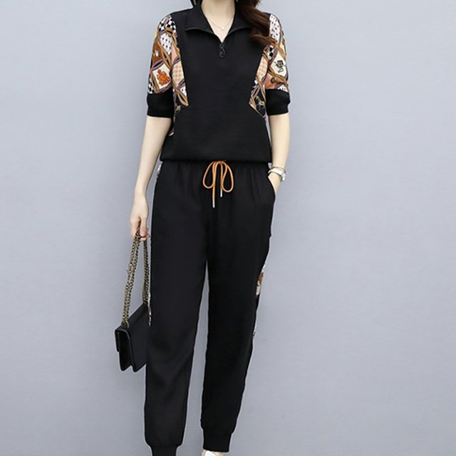 ชุดลำลองผ้าไหมเย็นผู้หญิง พิมพ์ลายดอกไม้สุดหรู
