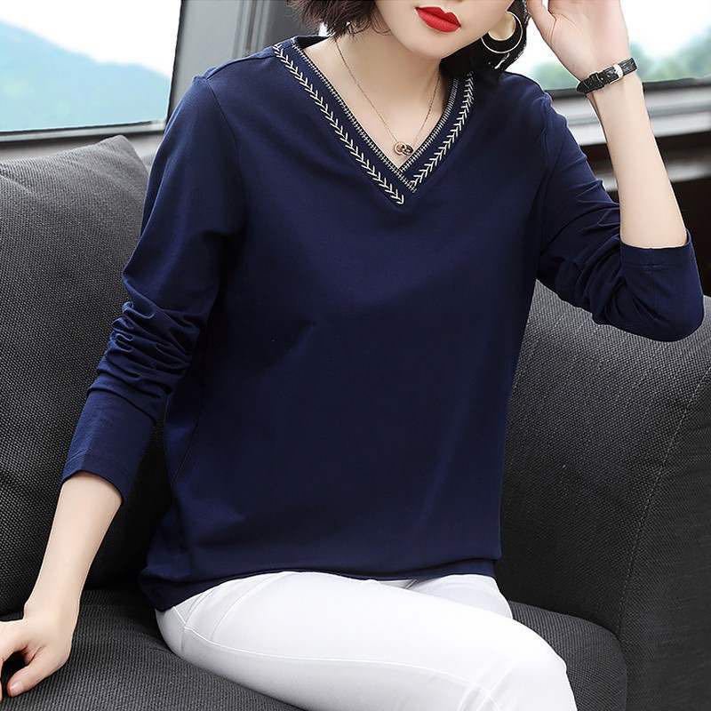 เสื้อยืดผ้าฝ้าย คอวี แขนยาว